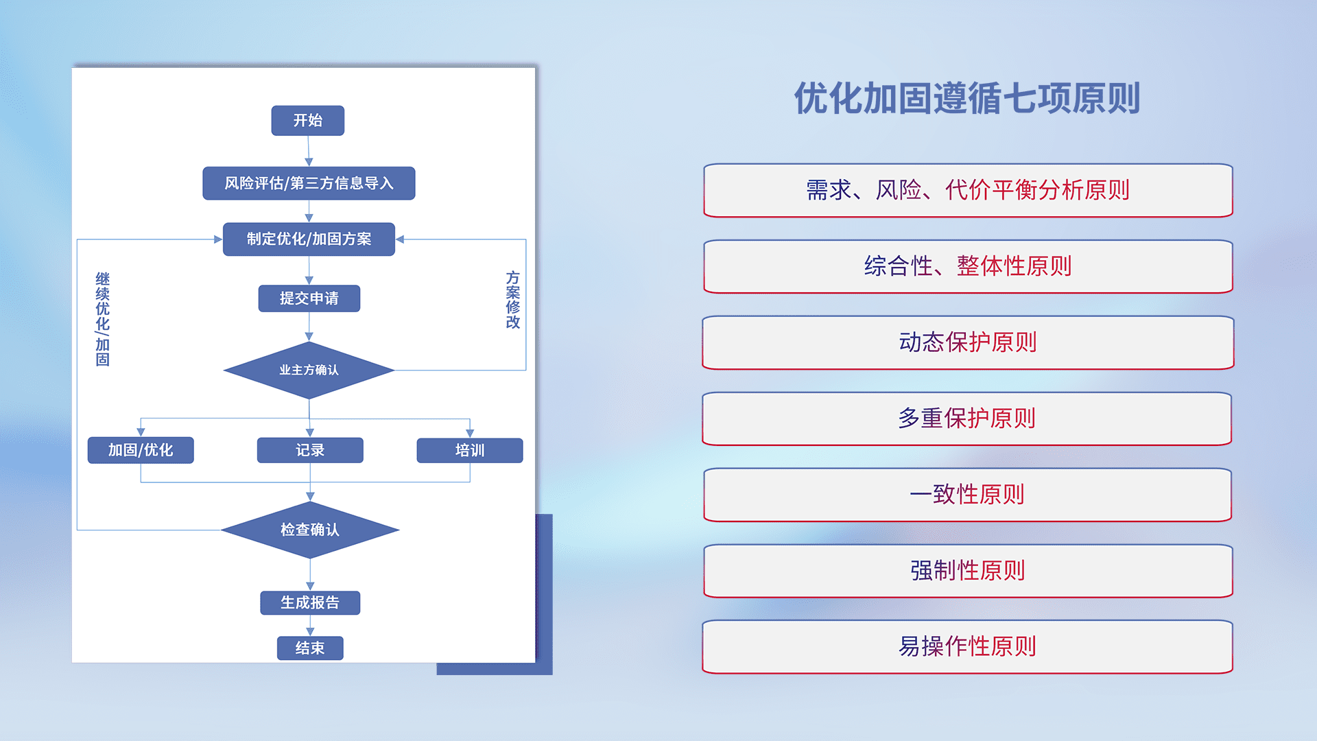 通过专业的法律咨询解读、、、合规架构体现、、差异化解决方案、、、、测试实施支持等服务,,,,为客户量身打造等保合规体系。。
