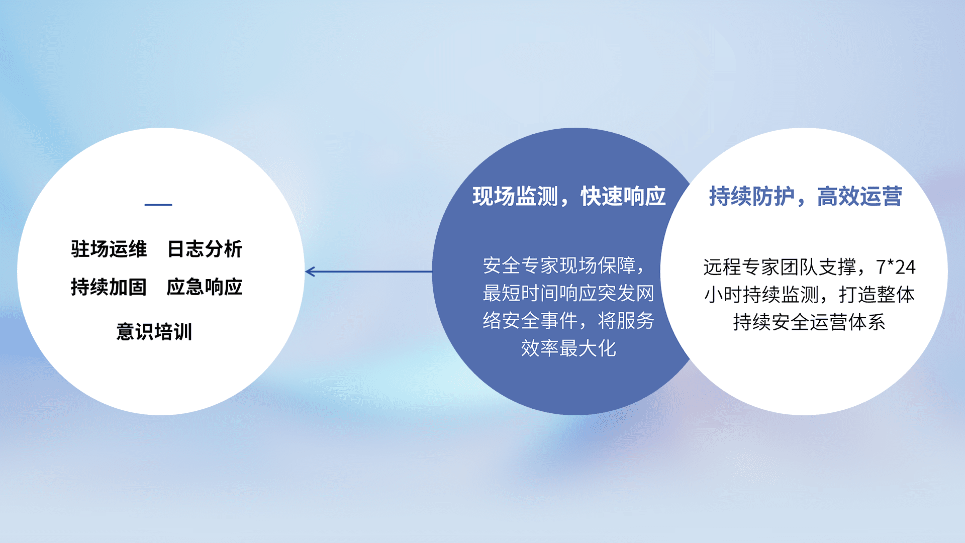7X24小时持续监测安全事件,保持安全策略有效性,降低资产脆弱性风险,,,,精准拦截黑客攻击,,,,减少被黑客利用的机会,,第一时间遏制,,,降低损失。。。